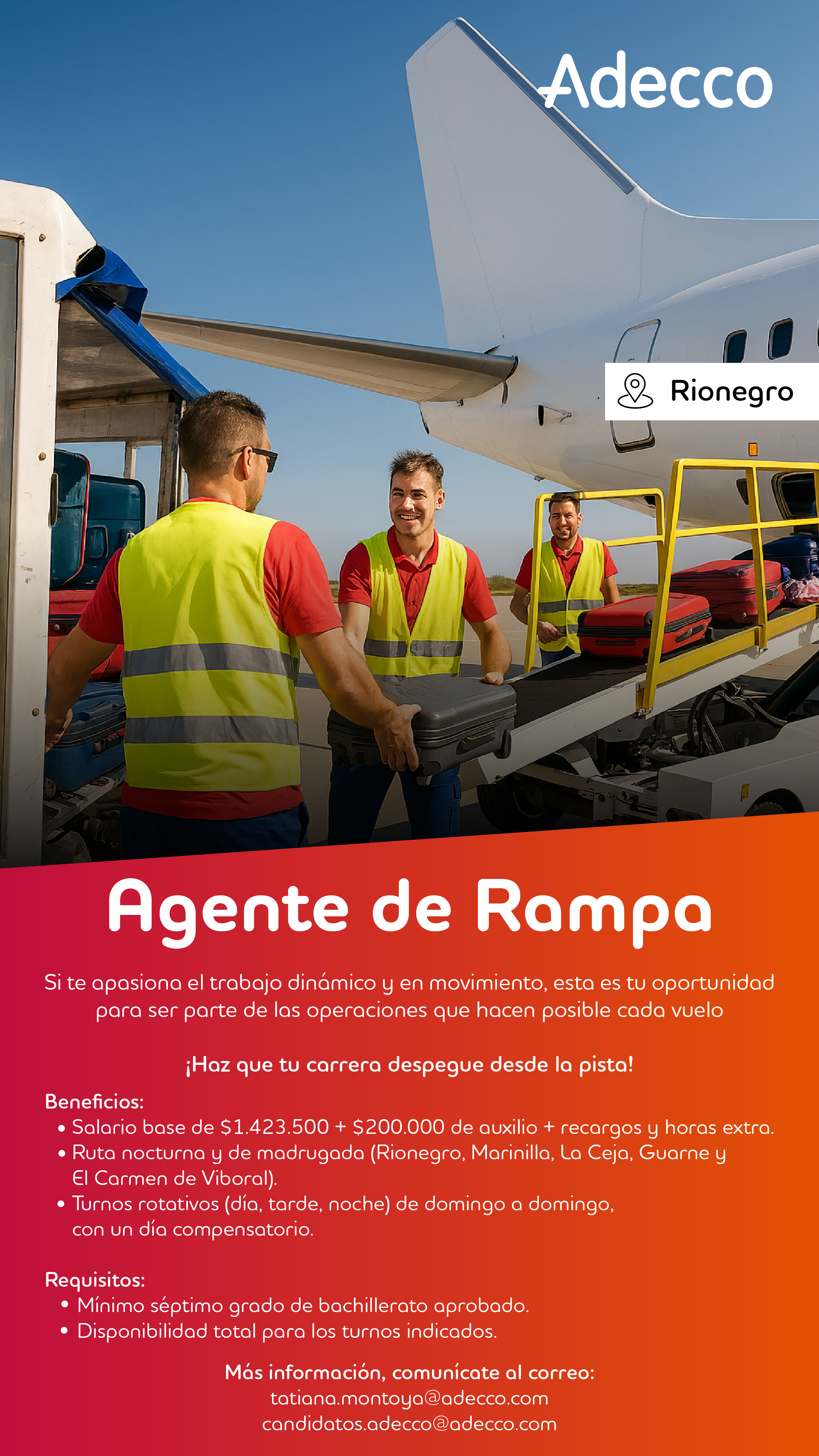 Multinacional líder en el sector aeroportuario está buscando Operarios logísticos (Operarios Logísticos) para unirse a su equipo en el Aeropuerto José María Córdova – Rionegro.